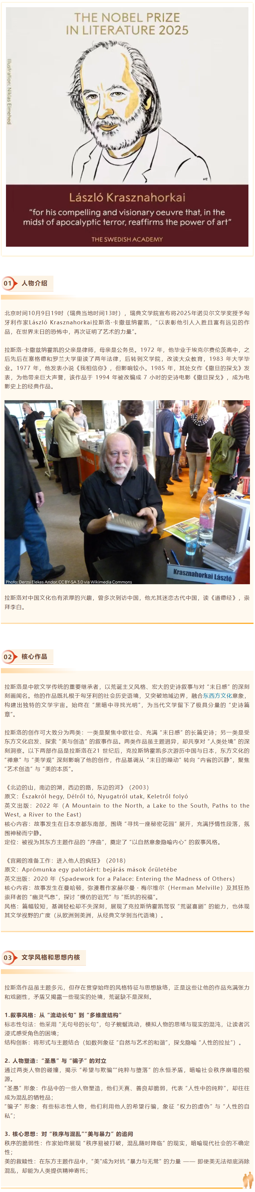 罗兰大学和塞格德大学校友 | 匈牙利作家拉斯洛·卡撒兹纳霍凯获得2025年诺贝尔文学奖!
