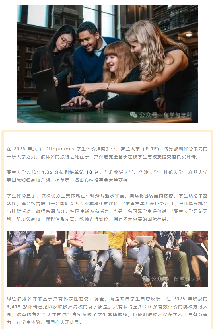 学生评价:罗兰大学跻身欧洲顶尖高校之列