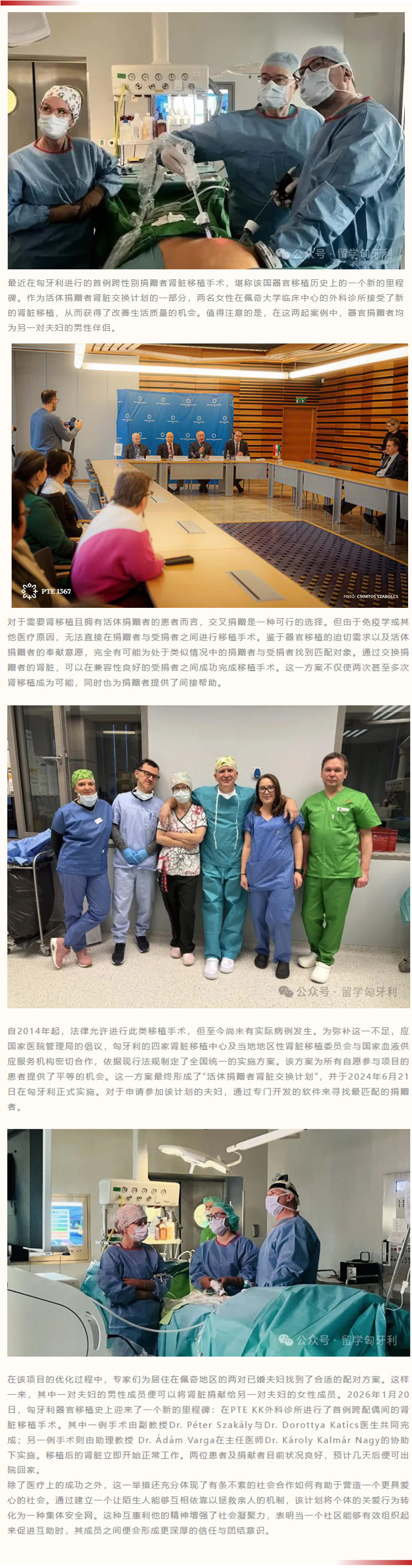 匈牙利首例肾脏交叉移植捐赠手术在佩奇临床中心完成