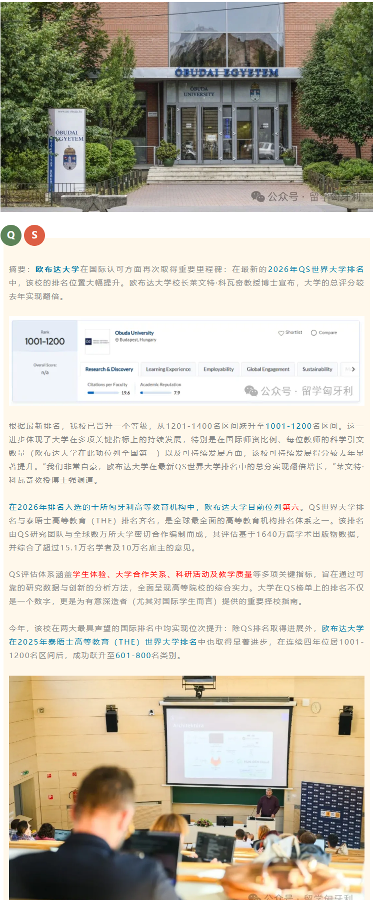 布达佩斯理工平替-欧布达大学 | QS世界大学排名持续提升!