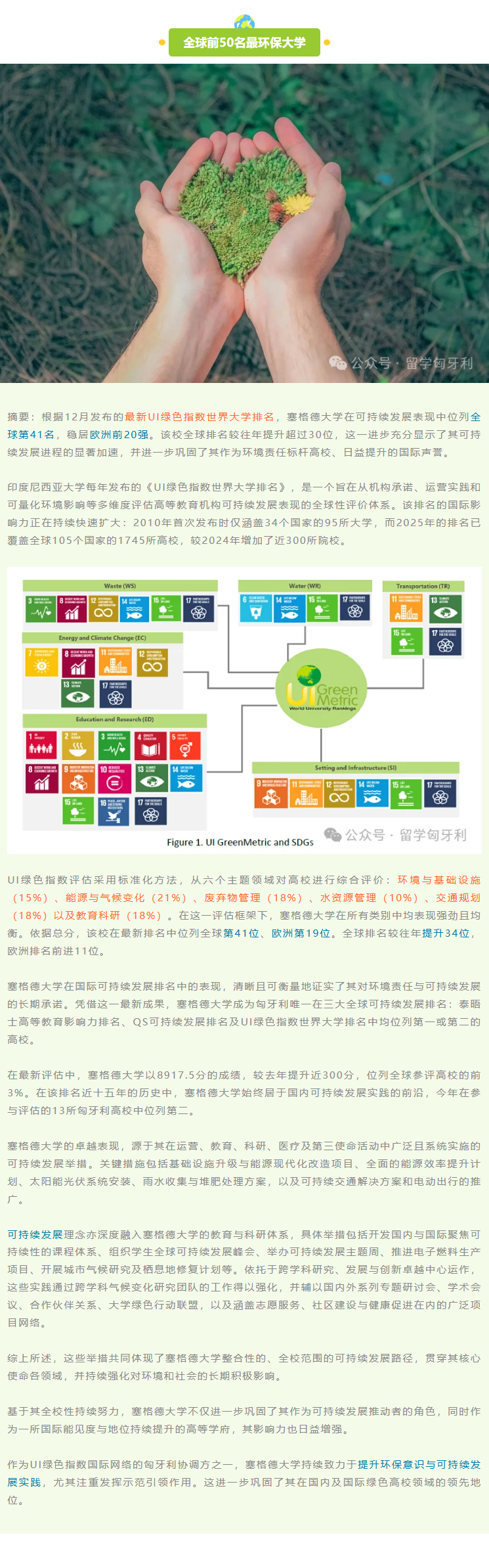 塞格德大学 | 跻身全球前50名最环保大学行列